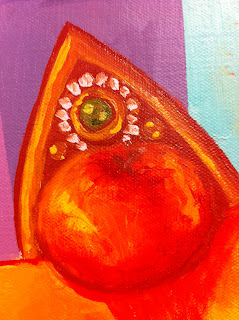 At the crown on top of Ganesh's head is the sweet fruit - peach. Later on I will probably challenge myself to guilding a gold leaf design as a crown element.