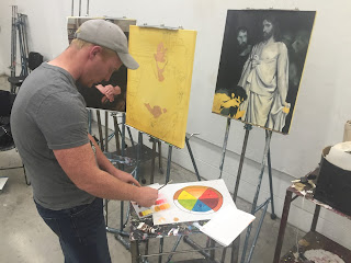 We begin blocking in the major colours in their personal compositions using a different method (direct application) more akin to the french academic method of the 19 ce.