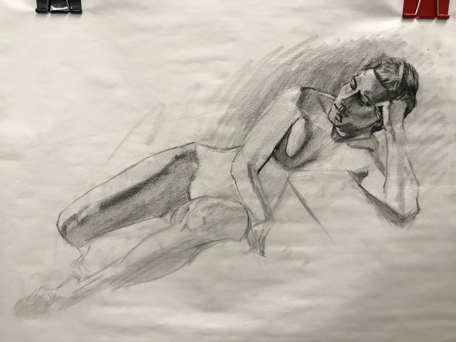 Take a look at Atelier Artista's regular Wednesday evening group. We were blessed by a pleasant treat, we had a live string quartet while our male model Devin did long pose. You can have a look and listen to the little iphone video I show below. Sorry viewers, no nude male model recorded here.